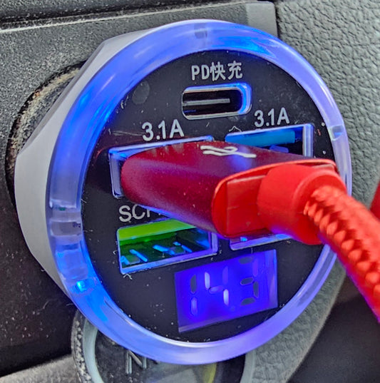 Kfz Zigarettenanzünder Ladestecker mit 4 x USB und 1 x USB C weiß mit Voltanzeige, Zigarettenanzünder Adapter