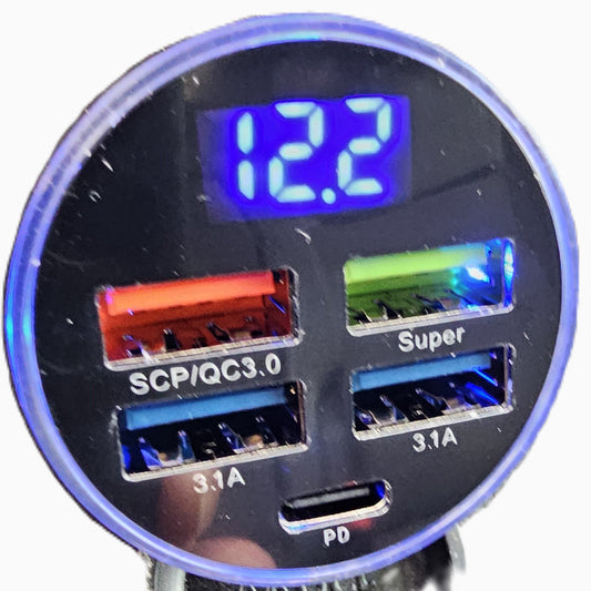 Kfz Zigarettenanzünder Ladestecker mit 4 x USB und 1 x USB C schwarz mit Voltanzeige, Zigarettenanzünder Adapter